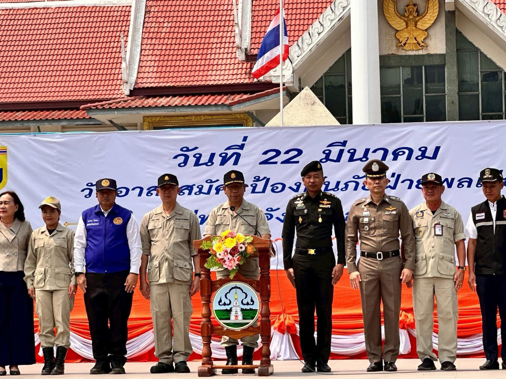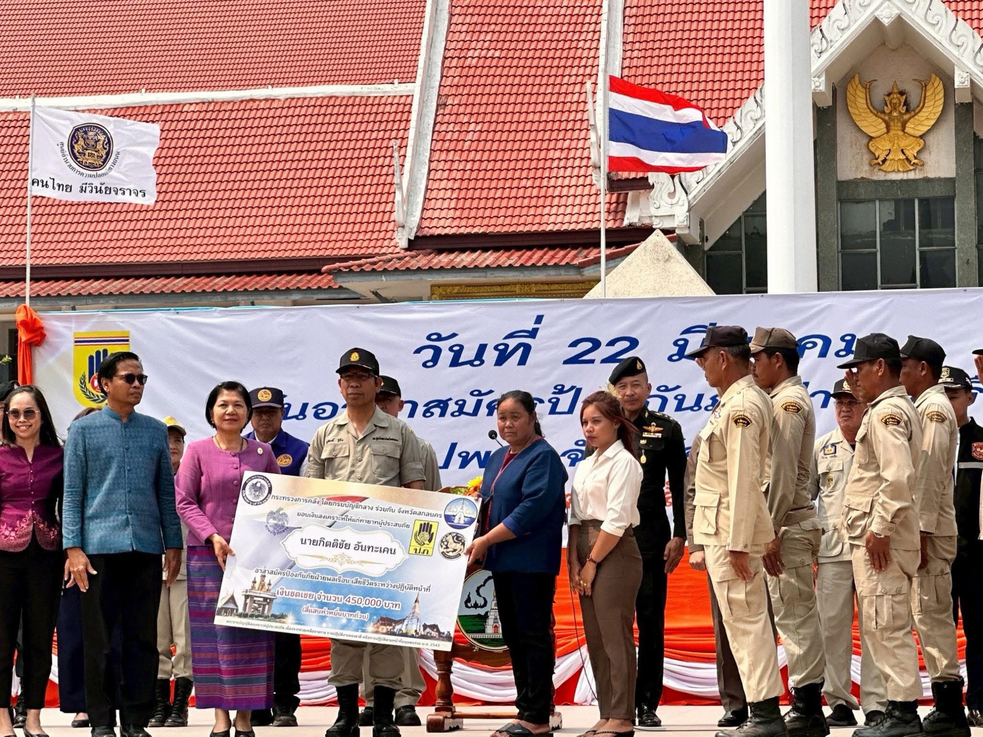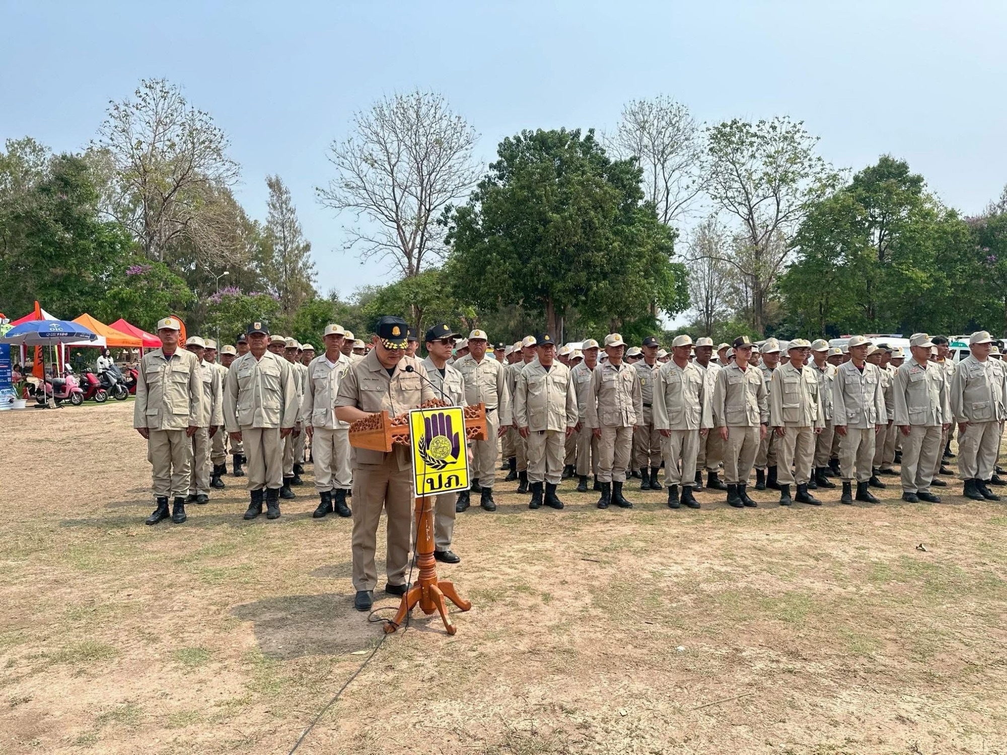 วันที่ 2 เมษายน 2568 เวลา 06.00 นาฬิกา นางสาวจีรภัทร ประภาสินธ์ รองปลัดเทศบาลตำบลปทุมวาปี รักษาราชการแทนปลัดเทศบาล ปฏิบัติหน้าที่ นายกเทศมนตรีตำบลปทุมวาปี อนุมัติให้ เจ้าพนักงานป้องกันและบรรเทาสาธารณภัย นำกำลัง อาสาสมัครป้องกันภัยฝ่ายพลเรือน (อปพร.) เทศบาลตำบลปทุมวาปี ร่วมพิธีมอบใบประกาศ อปพร. ดีเด่นประจำปี 2567 พร้อมมอบเงินช่วยเหลือแก่ญาติ อปพร.ที่เสียชีวิตจากการปฏิบัติหน้าที่ และกระทำพิธีเปิดโครงการลดอุบัติเหตุทางถนนช่วงเทศกาลสงกรานต์ ปี 2568 ณ ศาลากลางจังหวัดสกลนคร